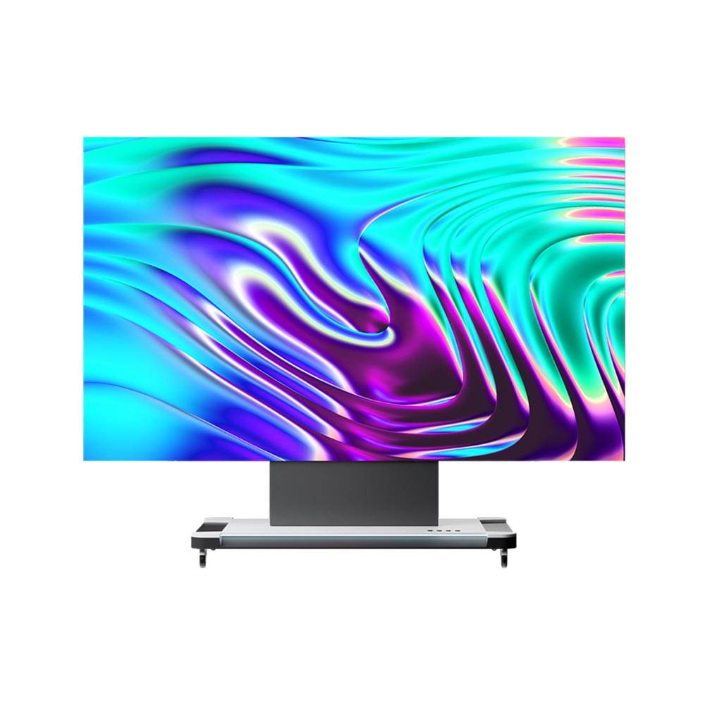 AT135智慧LED(COB)折叠屏,开启高清显示新视界。搭载前沿COB面板技术,采用全前维护设计,安装维修轻松高效。高色域、高对比度,1920*1080的物理分辨率,轻松呈现细腻逼真的高画质画面。铝合金箱体,平整稳固,外观精致。遥控电动升降,操作便捷随心。屏体采用向后折叠技术,运输高效便捷。多种接口配置,满足多设备连接,低待机功耗,节能又环保。