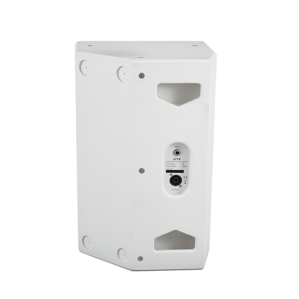 GY8采用二分频扬声器系统设计,选用国际知名品牌单元,低频是一只高性能8"低频扬声器,高频采用一只1.4"压缩驱动器+恒指向性号角,钕磁设计。具有超高的解析力,中频饱满通透,有效地提高了音箱的清晰度。多吊点设计,可以全方位无死角度来进行安装,达到声音传播的最优化。灵活的安装方式:可以吊挂,也可以使用音箱支架支撑模式,还可以做为舞台监听音箱使用。