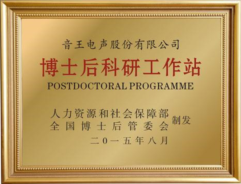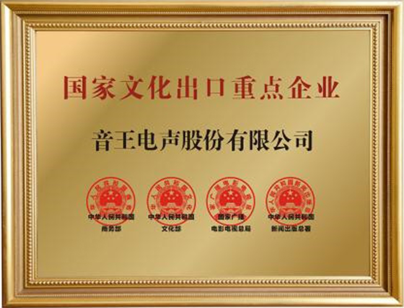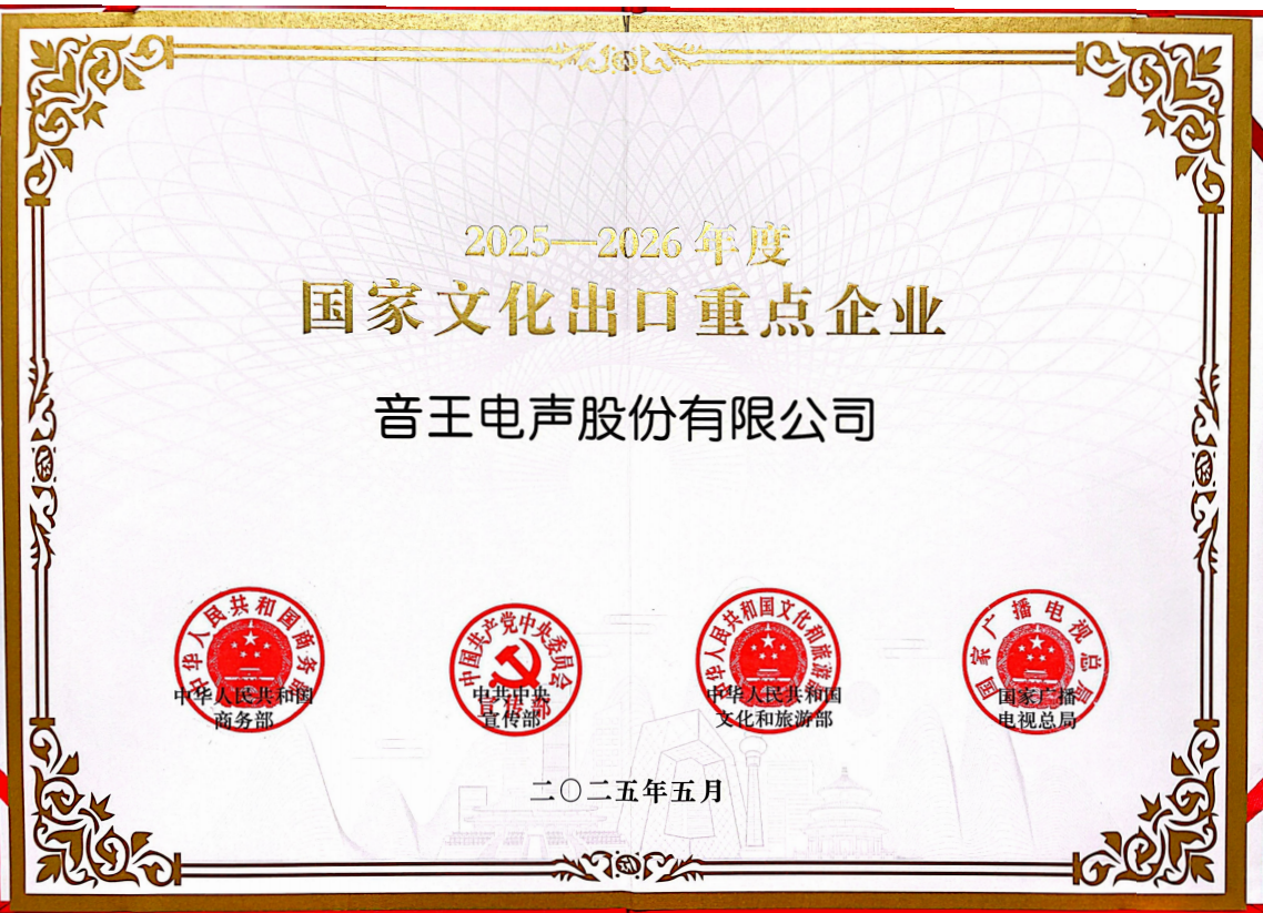 音王拥有“国家企业技术中心”、“国家文化和科技融合示范基地”、“ 国家制造业单项冠军”、“沉浸声文化和旅游部技术创新中心”等数十项国家级平台及殊荣。全球设有22个研发机构,获得600余项发明及实用专利,成为国家级专利示范企业。2025年经国家权威机构评估音王的品牌市值已达47.2亿元。