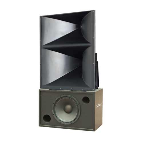1. 三分频(两驱动)专业影院音箱由一只φ100芯低频单元,一只φ100芯压缩式中频驱动器和一只φ75芯压缩式高频驱动器组成;