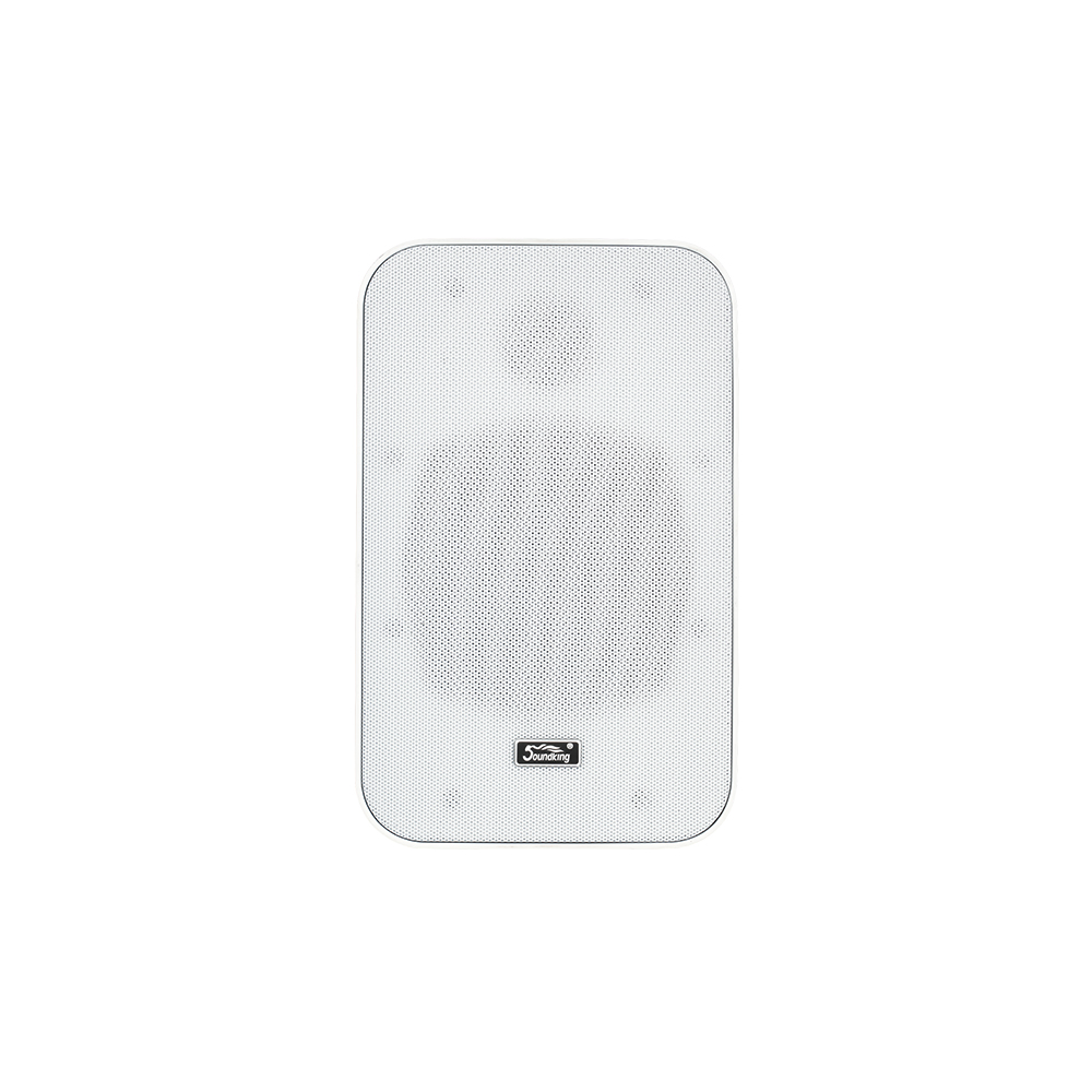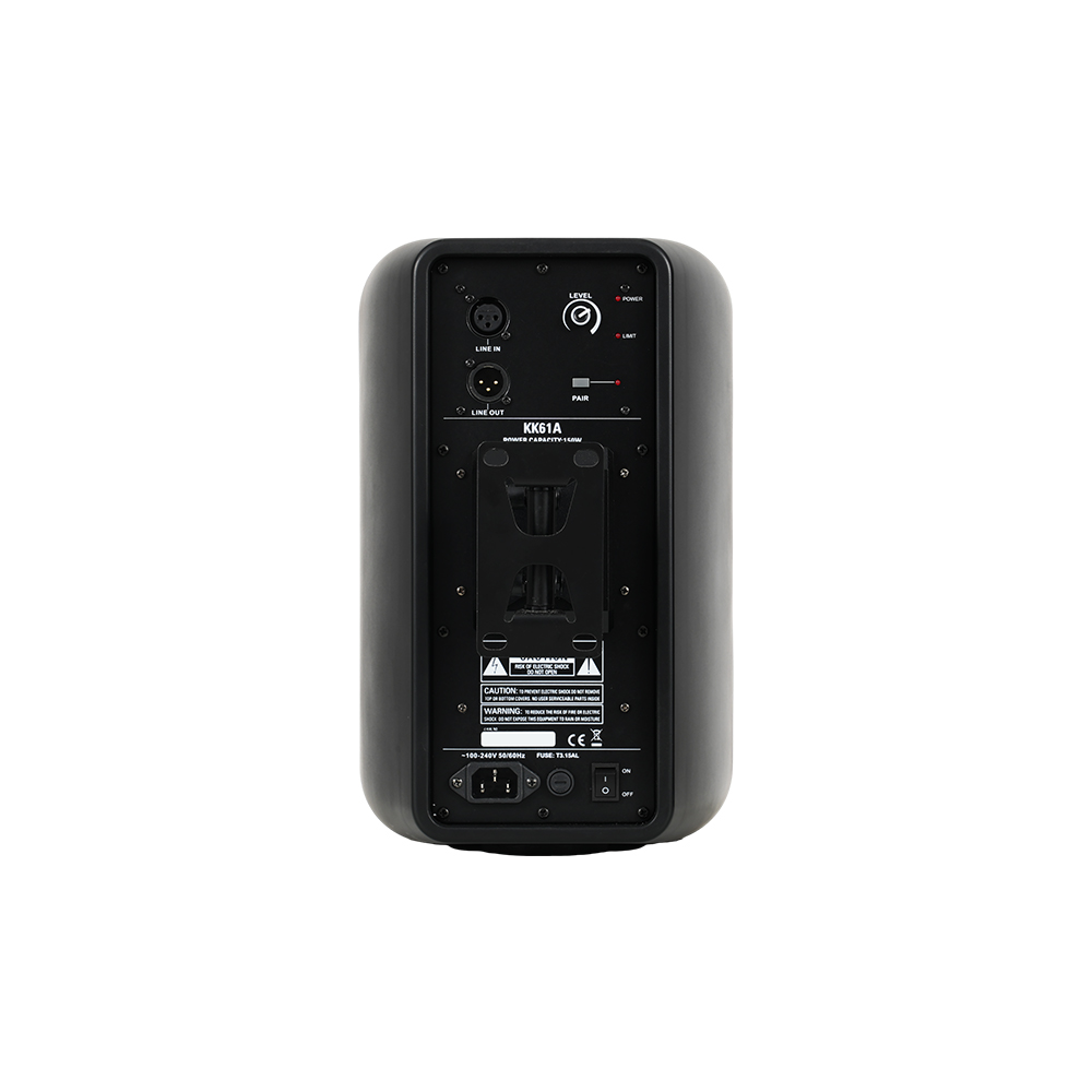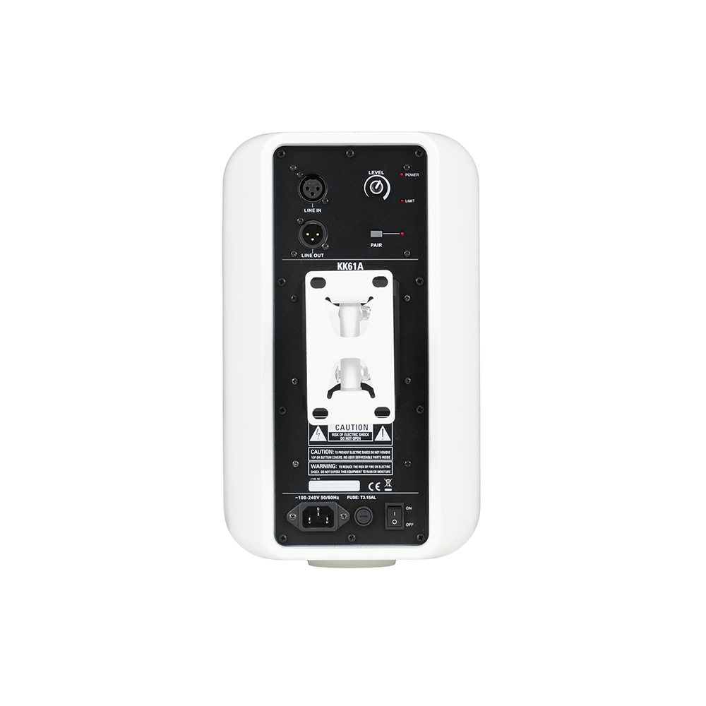 KK61A是一款单6.5寸二分频有源塑壳同轴音箱,内置高性能6.5寸同轴扬声器,呈现出清晰明亮的音色, 同时具有厚实饱满的音质和低失真的特点。内置双通道Class-D类功放,提供高达150W的总功率,确保卓越的音质表现。底部装有25mm双孔托盘,可选择不同倾斜角度方便使用,同时后部配备可上下左右旋转 的壁挂件,方便安装和布局。音箱外观采用高强度聚丙烯工程塑料注塑成型,外观优美,同时兼具耐用性 和便携性。产品黑、白两色可选。
