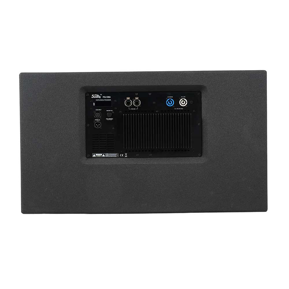 专为LED屏环屏音响系统而研发的二款有源超低频音箱; FCL15SA 音箱由一只φ100 芯 15"低频单元组成;低频单元采用了特制铝调制环,显著降低了失真及有效的提高了音圈散热能力,4"耐高温音圈、长冲程设计,大大提高了功率承受能力;功放采用 Class-D类音频功率放大,功率可达2400W带载能力强大,性能稳定、失真小、效率高。