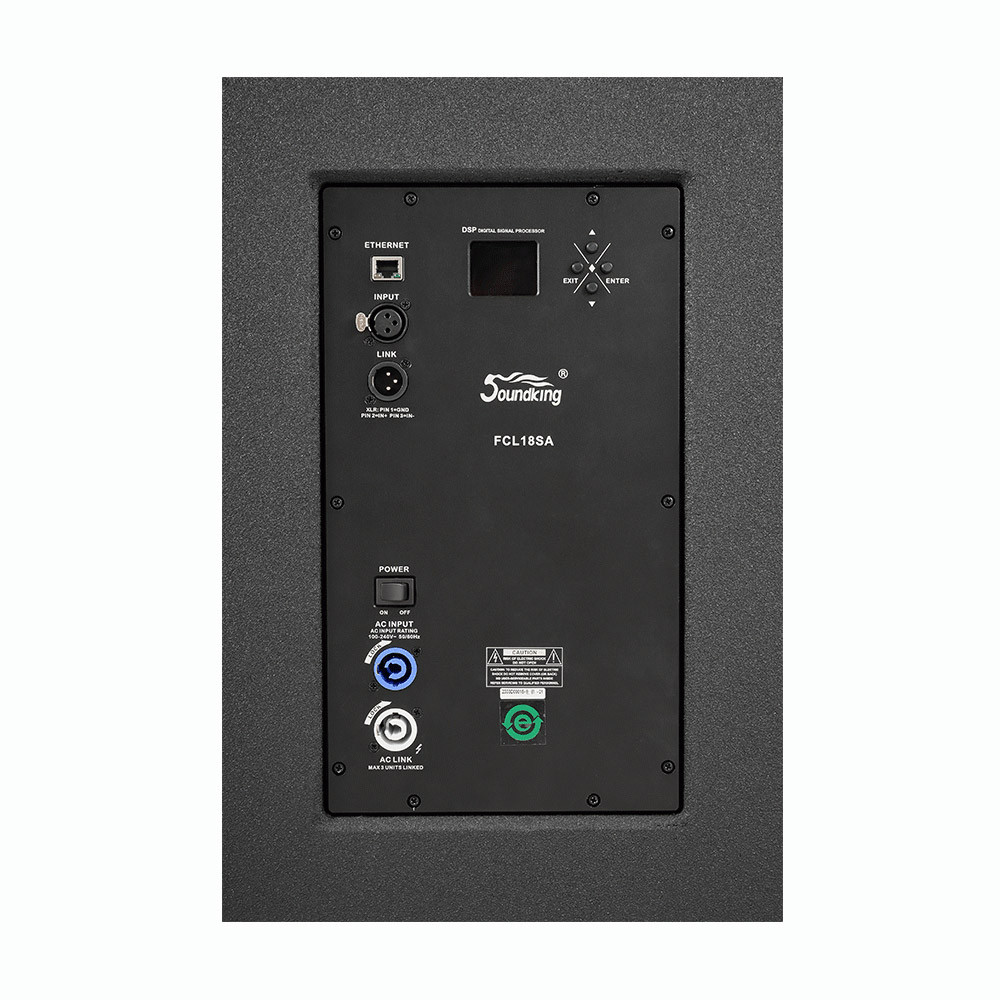专为LED屏环屏音响系统而研发的有源超低频音箱; FCL18SA 音箱由一只Φ100 芯 18"低频单元组成;低频单元采用了特制铝调制环,显著降低了失真及有效的提高了音圈散热能力,4"耐高温音圈、长冲程设计,大大提高了功率承受能力;功放采用 Class-D类音频功率放大,功率可达3000W带载能力强大,性能稳定、失真小、效率高。
