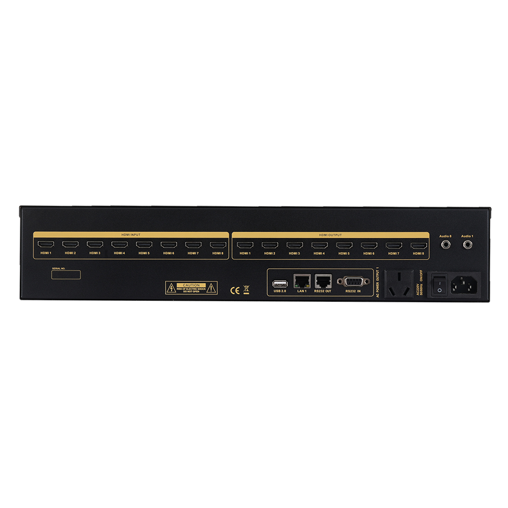 2. 支持8路HDMI信号输入,8路HDMI信号输出,带音频解嵌;