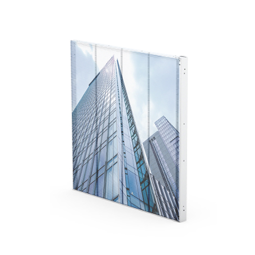 2. 超高通透,几乎不影响原建筑物外观,基于安全的轻薄设计定制箱体,可快速安装,隐藏箱体连接线,可保证屏幕上每个像素点的亮度、色温等要素控制在一个范围之内,实现画面显示的完整性和完美度;纳秒级响应时间,不出现拖尾重影现象;屏幕使用寿命长;超宽视角,能在各种角度均能获得优质显示效果;